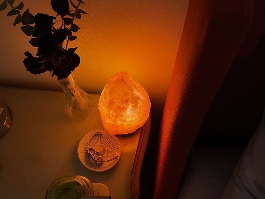 At around 7pm, I’ll turn off my harsh, rented-apartment overhead light and start to cozy up with my salt lamp. The dark room with red-orange lighting sends signals to my brain that it’s time to start relaxing, and inherently makes me want to slow down. If you know me, you’ll know that I’m very big on my wind-down time. Warm-toned lighting is easier on the eyes, and is also shown to help with sleep. I got mine as a gift from a friend, but I’ve linked a salt lamp here.